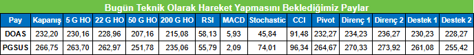 Bugün Teknik Olarak Hareket Yapmasını Beklediğimiz Paylar