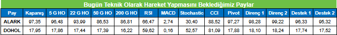 Bugün Teknik Olarak Hareket Yapmasını Beklediğimiz Paylar
