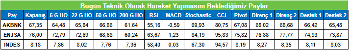 Bugün Teknik Olarak Hareket Yapmasını Beklediğimiz Paylar