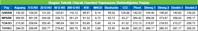 Bugün Teknik Olarak Hareket Yapmasını Beklediğimiz Paylar