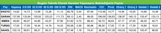 Bugün Teknik Olarak Hareket Yapmasını Beklediğimiz Paylar