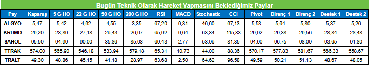 Bugün Teknik Olarak Hareket Yapmasını Beklediğimiz Paylar