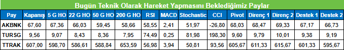 Bugün Teknik Olarak Hareket Yapmasını Beklediğimiz Paylar