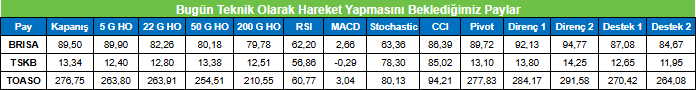 Bugün Teknik Olarak Hareket Yapmasını Beklediğimiz Paylar