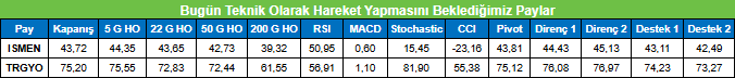 Bugün Teknik Olarak Hareket Yapmasını Beklediğimiz Paylar