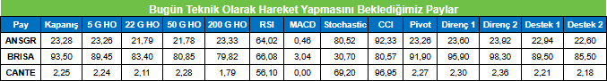 Bugün Teknik Olarak Hareket Yapmasını Beklediğimiz Paylar