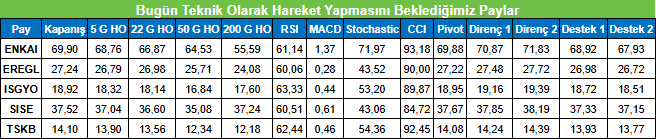 Bugün Teknik Olarak Hareket Yapmasını Beklediğimiz Paylar