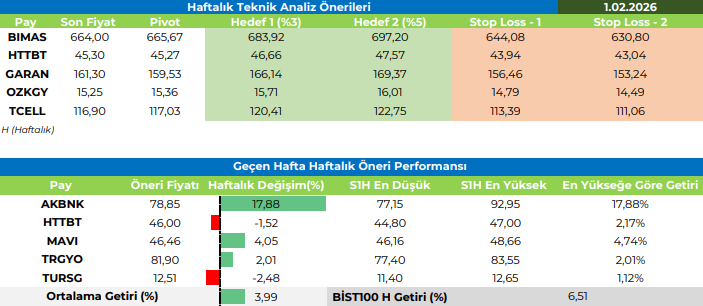 Haftalık Teknik Analiz Önerileri