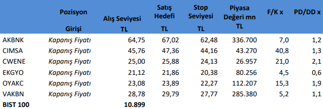 Takibimizdeki hisseler tamamen teknik analize göre belirlenmektedir. İşlem hacmi ve likiditesi yüksek 100 Endeks hisselerinden olmasına öncelik verilmektedir. Pozisyona giriş fiyatları Cuma günü kapanış seansında oluşan fiyatlardan yapılmaktadır. Hedefine ulaşmayan pozisyonlar stop loss seviyesinin altına inmediyse, bir sonraki Cuma günü kapanış fiyatından kapatılmaktadır. Belirlenen stop loss seviyeleri referans stop noktasıdır. Bu stop loss seviyesinin altında bir kapanış olması halinde referans değer gün sonu kapanış olarak alınacaktır.