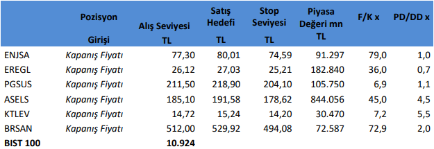Takibimizdeki hisseler tamamen teknik analize göre belirlenmektedir. İşlem hacmi ve likiditesi yüksek 100 Endeks hisselerinden olmasına öncelik verilmektedir. Pozisyona giriş fiyatları Cuma günü kapanış seansında oluşan fiyatlardan yapılmaktadır. Hedefine ulaşmayan pozisyonlar stop loss seviyesinin altına inmediyse, bir sonraki Cuma günü kapanış fiyatından kapatılmaktadır. Belirlenen stop loss seviyeleri referans stop noktasıdır. Bu stop loss seviyesinin altında bir kapanış olması halinde referans değer gün sonu kapanış olarak alınacaktır.