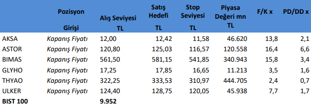 Borsa endeksi teknik olarak, 10250 ila 9600 arasında git gel yapmaya devam ediyor. Haftalık teknik göstergeler pozitif bölgede olmasına karşın şimdilik endeksin 10.250 seviyesi üzerine yerleşmesi için yeterli gücü kazanmış değil. Günlük grafikte ise 22 ve 50 günlük hareketli ortalamasına denk gelen 9930 seviyesi üzerinde kapanış gerçekleşmesi olumlu ancak yukarıda 10.250 direnci aşılmadıkça pozisyon ağırlığını artırmak için beklemede kalacağız.