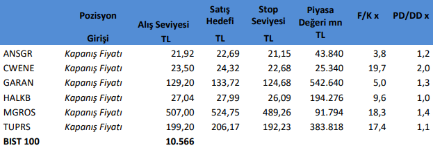 Takibimizdeki hisseler tamamen teknik analize göre belirlenmektedir. İşlem hacmi ve likiditesi yüksek 100 Endeks hisselerinden olmasına öncelik verilmektedir. Pozisyona giriş fiyatları Cuma günü kapanış seansında oluşan fiyatlardan yapılmaktadır. Hedefine ulaşmayan pozisyonlar stop loss seviyesinin altına inmediyse, bir sonraki Cuma günü kapanış fiyatından kapatılmaktadır. Belirlenen stop loss seviyeleri referans stop noktasıdır. Bu stop loss seviyesinin altında bir kapanış olması halinde referans değer gün sonu kapanış olarak alınacaktır.