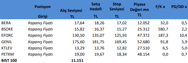 Takibimizdeki hisseler tamamen teknik analize göre belirlenmektedir. İşlem hacmi ve likiditesi yüksek 100 Endeks hisselerinden olmasına öncelik verilmektedir. Pozisyona giriş fiyatları Cuma günü kapanış seansında oluşan fiyatlardan yapılmaktadır. Hedefine ulaşmayan pozisyonlar stop loss seviyesinin altına inmediyse, bir sonraki Cuma günü kapanış fiyatından kapatılmaktadır. Belirlenen stop loss seviyeleri referans stop noktasıdır. Bu stop loss seviyesinin altında bir kapanış olması halinde referans değer gün sonu kapanış olarak alınacaktır.