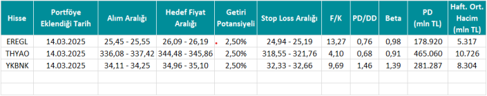 *Tablo yer alan fiyat sütunu verileri ile diğer veriler hisselerin portföye eklendiği tarihten önceki son işlem günü kapanış verileri üzerinden hesaplanmıştır.
