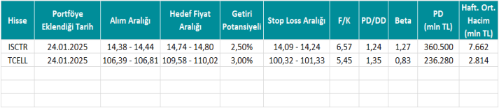 *Tablo yer alan fiyat sütunu verileri ile diğer veriler hisselerin portföye eklendiği tarihten önceki son işlem günü kapanış verileri üzerinden hesaplanmıştır.