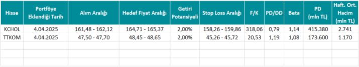 *Tablo yer alan fiyat sütunu verileri ile diğer veriler hisselerin portföye eklendiği tarihten önceki son işlem günü kapanış verileri üzerinden hesaplanmıştır.