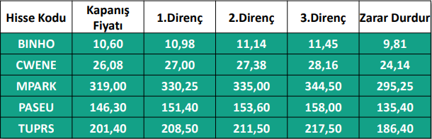 5) Raporda yer alan hisselerin hedef fiyat ve/veya stop seviyelerine ulaşmaması durumunda pozisyonlar beş iş günü sonunda kapatılacaktır.