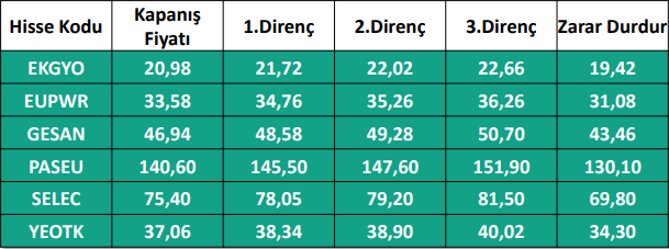 1) Haftalık Hisse Takip Listesinde yer alan hisse senetleri, Hedef Fiyat Aralığı ve Stop-Loss seviyeleri teknik analiz kriterlerine göre seçilmiştir. Liste içerisinden bireysel hisse senedi seçimi yapılması beklentilerinize uygun sonuçlar doğurmayabilir.