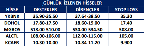 Endekste çıkış hareketi devam ediyor. İlk destekler 11.200 ve 11.150 seviyelerinde. Bu seviyeler günlük işlemler için daha önemli. Sonraki destekler 11.070-11.000 ve 10.900 seviyelerinde bulunuyor. İlk dirençler ise 11.250-11.270 noktalarında. Sonraki dirençler ise 11.340 ve 11.600 seviyelerinde. Endekste direnç noktalarında satışlar görülse de çıkış hareketi gücünü koruyabilir. Güne alıcılı başlanabilir.