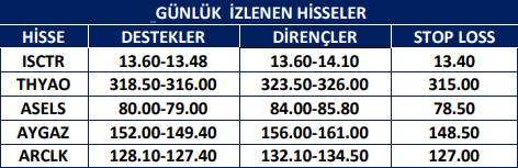 Endeks direnç seviyelerinde satışla karşılaştı. İlk destekler 9.800-9.780 olarak görülürken bu seviyeler günlük işlemler için izlenebilir. Sonraki destekler 9.700 ve 9.620-9.580 seviyelerinde. İlk dirençler ise 9.900 ve 10.000 seviyelerinde bulunuyor. Sonraki dirençler 10.100 ve 10.180 seviyelerinde. Endekste destek seviyelerinde tepki alımları görülebilir. Ancak direnç seviyelerinde satışla karşılaşma olasılığı yüksek.