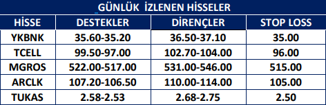Endekste çıkış hareketi sürmekle birlikte direnç seviyelerinde satış denemeleri görülüyor İlk destekler 11.200 ve 11.170-11.150 seviyelerinde. Bu seviyeler günlük işlemler için önemli. Sonraki destekler 11.070-11.000 ve 10.900 seviyelerinde bulunuyor. İlk dirençler ise 11.300-11.315 noktalarında. Sonraki ve daha önemli dirençler ise 11.550-11.600 seviyelerinde. Endekste çıkış hareketi gücünü korumakla birlikte direnç noktalarında satışlar görülebilir. Güne yatay seyirle başlanabilir.