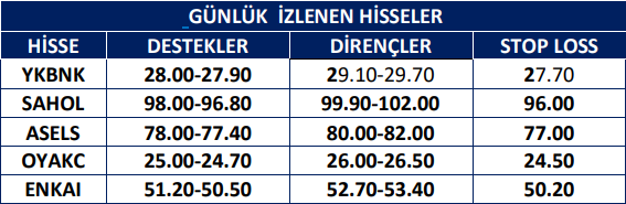 Endekste tepki çıkış satışla karşılaştı. İlk destekler 9.750-9.700 olarak görülürken bu seviyeler günlük işlemler için izlenebilir. Sonraki destekler 9.620-9.580 seviyelerinde. İlk dirençler ise 9.850-9.900 seviyelerinde bulunuyor. Sonraki dirençler 9.980 ve 10.100 seviyelerinde. Endekste destek seviyelerinde alımların görülebilir. Ancak güç kazanması olasılığı zayıf.