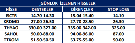 İlk dirençler ise 11.050-11.100 seviyelerinde görülüyor. 11.100 daha önemli. Bu seviyenin üzerinde sonraki dirençler 11.200-11.300 ve 11.600 seviyelerinde bulunuyor. Endekste çıkış hareketinin devamı beklenmekle birlikte direnç noktalarında kâr satışları görülse de çıkış hareketi gücünü koruyabilir.