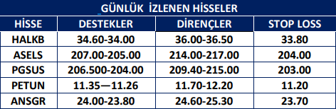 Günlük İzlenen Hisseler