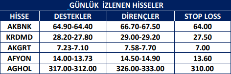 Endekste tepki çıkışı görüldü. İlk destekler 9.900 ve 9.850-9.820 olarak görülürken bu seviyeler günlük işlemler için izlenebilir. Sonraki destekler 9.750-9.700 seviyelerinde. İlk dirençler ise 9.950-9.980 seviyelerinde bulunuyor. Sonraki dirençler 10.100 ve 10.180 seviyelerinde. Endekste tepki çıkışının devamı beklenmekle birlikte direnç seviyelerinde satışlar görülebilir.