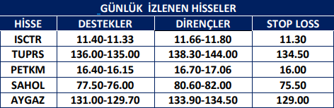 Endekste düşüş eğilimi sürüyor. İlk destekler 9.140 ve 9.070-9.000 olarak bulunurken bu seviyeler günlük işlemler için önemli. Sonraki destekler 8.900-8.800 seviyelerinde bulunuyor. İlk dirençler ise 9.255-9.280 seviyelerinde. Sonraki dirençler 9.330 ve 9.420 seviyelerinde görülüyor. Endekste destek noktalarında tepki alımları görülebilir. Ancak olası tepki alımları direnç seviyelerinde satışla karşılaşabilir.