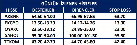 Endekste satışlar sürüyor. İlk destekler 9.780 ve 9.690 seviyelerinde görülürken bu seviyeler günlük işlemler için izlenebilir. Sonraki destekler 9.580 ve 9.500 seviyelerinde. İlk dirençler ise 9.940 ve 10.000- 10.060 seviyelerinde bulunuyor. Sonraki dirençler 10.150 ve 10.276 seviyelerinde görülüyor. Endekste destek noktalarında tepki alımları görülse de güç kazanması olasılığı zayıf görülüyor.