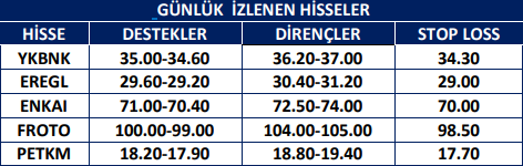 Endekste tepki yükselişi görüldü. İlk destekler 11.180-11.140 seviyelerinde. Sonraki destekler 11.050 ve 10.900 seviyelerinde. İlk dirençler ise 11.260-11.300 seviyelerinde görülüyor. Bu seviyelerin üzerinde sonraki dirençler 11.400-11.460 ve 11.600 seviyelerinde bulunuyor. Endekste görülen tepki yükselişi direnç seviyelerinde satışla karşılaşabilir.