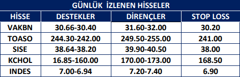 Endekste satış denemelerine rağmen çıkış trendi sürüyor. İlk destekler 11.300-11.260 seviyelerinde. Bu seviyeler günlük işlemler için önemli. Sonraki destekler 11.170-11.100’de bulunuyor. İlk dirençler ise 11.400 ve 11.470 noktalarında. Sonraki dirençler 11.550-11.605 seviyelerinde. Endekste destek noktalarında alımların görüldüğü ancak dirençlerin geçilmekte zorlanıldığı piyasa görünümü korunabilir.