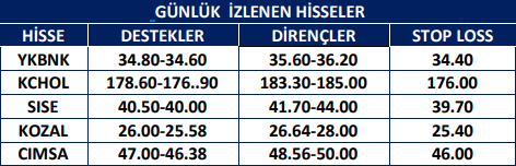 Endekste çıkış hareketi yerini düşüşe bıraktı. İlk destekler 11.300-11.290 seviyelerinde. Sonraki destekler 11.200 ve 11.000’de. İlk dirençler ise 11.430-11.470 seviyelerinde görülüyor. 11.470 daha önemli. Bu seviyenin üzerinde sonraki dirençler 11.540-11.600 seviyelerinde bulunuyor. Gap (boşluğu kapatan) endekste destek seviyelerinde tepki alımları görülebilir. Ancak güç kazanması olasılığı zayıf.