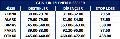 Endekste tepki yükselişi devam ediyor. İlk destekler 10.580-10.550 seviyelerinde. Sonraki destekler 10.500 ve 10.400-10.260 seviyelerinde. İlk dirençler ise 10.680-10.700 noktalarında. Bu seviyelerin üzerinde sonraki dirençler 10.780-10.900 ve 11.000 seviyelerinde bulunuyor. Endekste günü koruyan tepki yükselişi direnç seviyelerinde satışla karşılaşabilir. Dalgalı seyir görülebilir.