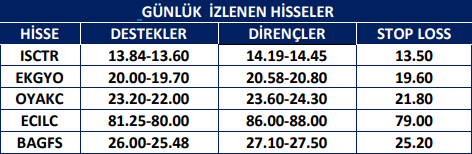 Endekste satışlara rağmen çıkış trendi korunuyor. İlk destekler 11.270-11.250 seviyelerinde. Bu seviyeler günlük işlemler için önemli. Sonraki destekler 11.170-11.100 ve 11.000 seviyelerinde. İlk dirençler ise 11.330-11.340 noktalarında. Sonraki dirençler 11.400-11.470 seviyelerinde bulunuyor. Endekste destek noktalarında alımlar görülse de direnç seviyelerini geçmekte zorlanılabilir.
