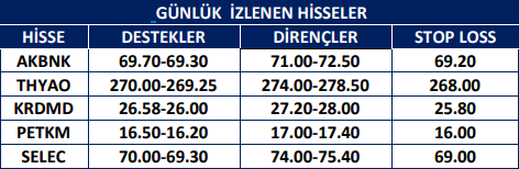 Endekste çıkış trendi korunuyor. İlk destekler 11.330-11.310 seviyelerinde. Bu seviyeler günlük işlemler için önemli. Sonraki destekler 11.270-11.250 ve 11.170 seviyelerinde. İlk dirençler ise 11.380-11.400 noktalarında. Sonraki dirençler 11.470 ve 11.550 seviyelerinde bulunuyor. Endekste yükselişin devamı beklenebilir. Güne alıcılı başlanabilir.