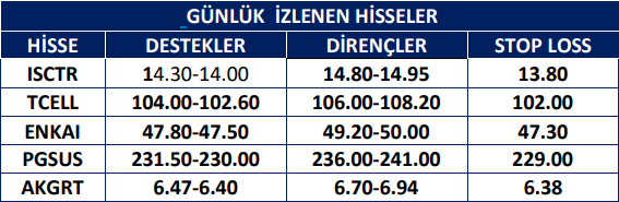 Endekste düşüş sürüyor. İlk destekler 9.430-9.400 olarak görülürken bu seviyeler günlük işlemler için izlenebilir. Sonraki destekler 9.300-9.200 seviyelerinde. İlk dirençler ise 9.550 ve 9.600 seviyelerinde bulunuyor. Sonraki dirençler 9.700-9.710 seviyelerinde. Endekste sert düşüşe bağlı tepki alımları görülse de satış baskısı korunabilir.