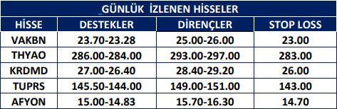 Endekste satışlar tepki alımlarıyla karşılaştı. İlk destekler 9.900 ve 9.820 seviyelerinde görülürken bu seviyeler günlük işlemler için izlenebilir. Sonraki destekler 9.780-9.750 ve 9.580 seviyelerinde. İlk dirençler ise 10.000-10.060 ve 10.100 seviyelerinde bulunuyor. 10.060-10.100 daha önemli. Sonraki dirençler 10.150 ve 10.276 seviyelerinde görülüyor. Endekste tepki çıkışının devamı beklenebilir.