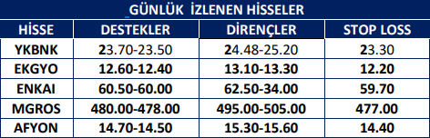 Endekste dalgalı seyirle birlikte düşüş hareketi devam ediyor. İlk destekler 9.500 ve 9.415 olarak görülüyor. Bu seviyeler günlük işlemler için önemli. Sonraki destekler 9.315-9.200’de. İlk dirençler ise 9.600-9.670 noktalarında. Bu seviyelerin üzerinde sonraki dirençler 9.800-9.830 seviyelerinde. Endekste destek noktalarında tepki alım denemeleri görülse de satış baskısı korunabilir. Güne satıcılı başlanabilir.