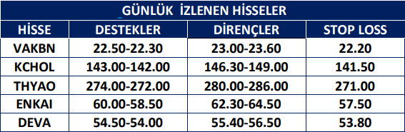 Endekste düşüş hareketi sürüyor. İlk destekler 9.000-8.965 olarak bulunurken bu seviyeler günlük işlemler için önemli. Sonraki destekler 8.900-9.870 ve 9.800 seviyelerinde bulunuyor. İlk dirençler ise 9.045-9.080 noktalarında. Sonraki dirençler 9.170-9.230 seviyelerinde görülüyor. Önemli destek bölgelerini test eden endekste destek seviyelerinde tepki alımları görülebilir. Ancak güç kazanması olasılığı zayıf.