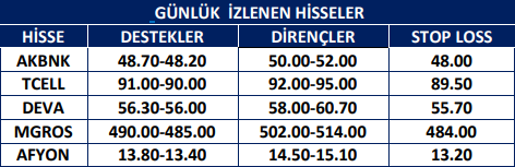 Endekste düşüş sürüyor. İlk destekler 9.200 ve 9.100-9.050 olarak görülürken bu seviyeler günlük işlemler için önemli. Sonraki destekler 8.900-8.800’de bulunuyor. İlk dirençler ise 9.280-9.300 noktalarında. Bu seviyelerin üzerinde sonraki dirençler 9.400-9.450 seviyelerinde. Satış baskısı süren endekste destek seviyelerinde tepki alımları görülebilir. Ancak direnç seviyeleri geçmekte zorlanılabilir.