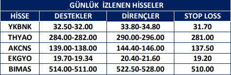 Endekste düşüş sürüyor. İlk destekler 10.450-10.400 olarak bulunurken bu seviyeler günlük işlemler için önemli. Sonraki destekler 10.330 ve 10.250-10.200 seviyelerinde. İlk dirençler ise 10.530-10.560 seviyelerinde. Sonraki dirençler 10.680-10.700 seviyelerinde bulunuyor. Endekste destek noktalarında tepki alımları görülebilir. Ancak direnç seviyelerinde satışla karşılaşabilir.