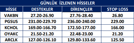 Günlük İzlenen Hisseler
