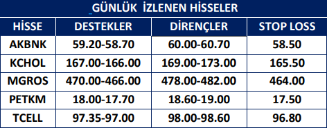 Borsada düşüş hareketi sürüyor. İlk destekler 10.830-10.800 olarak görülüyor. Bu seviyeler günlük işlemler için önemli. Sonraki destekler 10.750-10.700 ve 10.550 seviyelerinde. İlk dirençler 10.900 ve 10.980 noktalarında. Sonraki dirençler ise 11.100-11.150 seviyelerinde. Endekste sert düşüşe bağlı olarak tepki alımları görülebilir. Ancak güç kazanması olasılığı zayıf.