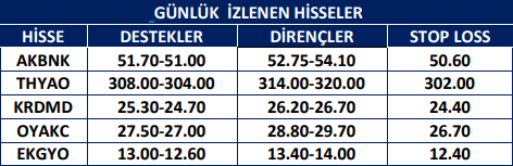 Endekste tepki alım denemelerine rağmen düşüş trendi korunuyor. İlk destekler 9.360-9.300 olarak görülüyor. Bu seviyeler günlük işlemler için önemli. Sonraki destekler 9.200-9.050. İlk dirençler ise 9.500 ve 9.670 noktalarında. Bu seviyelerin üzerinde sonraki dirençler 9.800-9.830 seviyelerinde. Satış baskısı korunan endekste tepki alımları görülebilir.