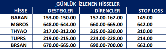 Günlük İzlenen Hisseler