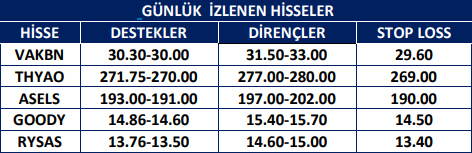Günlük İzlenen Hisseler