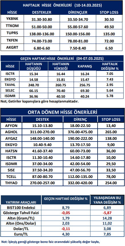 Haftalık Hisse Önerileri