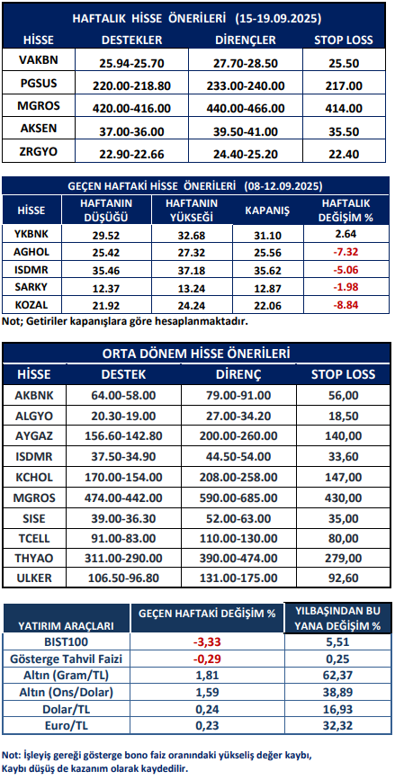 Meksa Yatırım Haftalık Hisse Önerileri – (15-19 Eylül 2025)